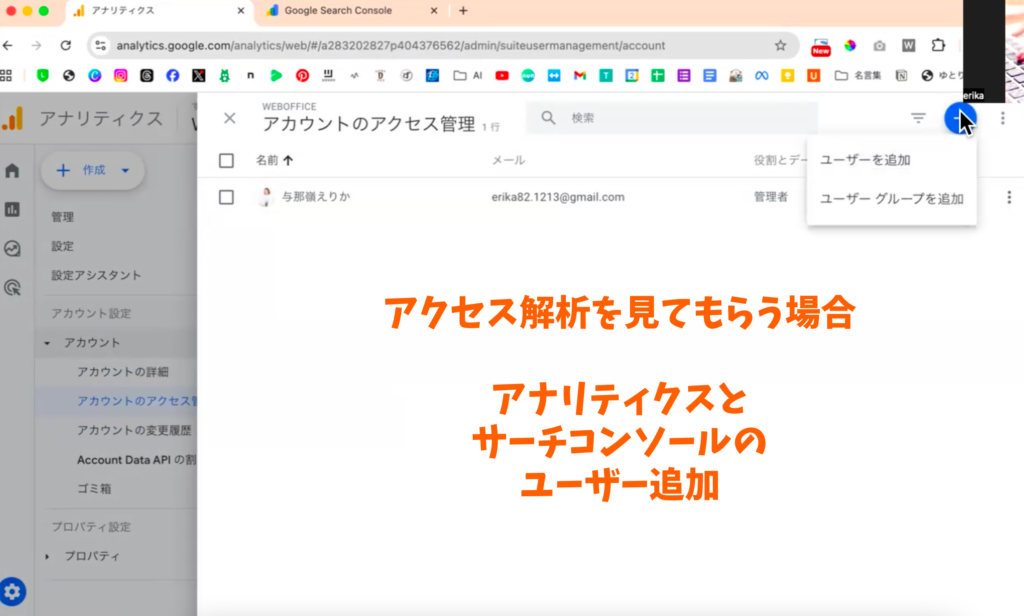 アクセス解析のユーザー追加|アナリティクスとサーチコンソールの中を見てもらう場合のやり方